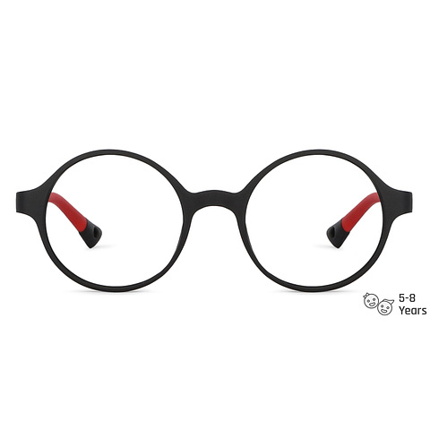 Blue-Block Kids Computer Glasses: Matte Black Red Full Rim Round Kids 5-8 yrs Lenskart Junior LKJ E10001CE-C2